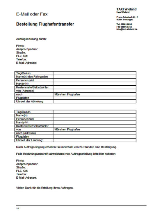 WORD-DATEI: „BESTELLFORMULAR FLUGHAFENTRANSFER“