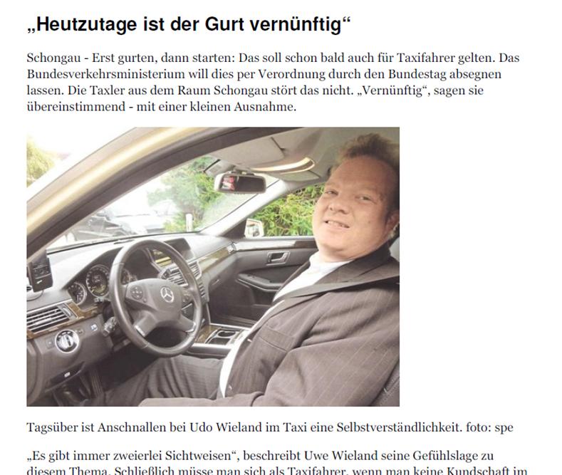 Artikel zum aktuellen Thema: Gurtpflicht im Taxi